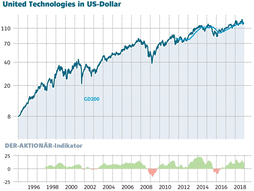 An den guten Geschäften lässt United Technologies seine Aktionäre auch teilhaben. Auf das Gesamtjahr schüttete der Konzern 2,82 Dollar je Aktie an seine Anteilseigner aus. United Technologies verfolgt aber schon seit langem eine aktionärsfreundliche Dividendenpolitik. In den vergangenen 24 Jahren erhöhte das Unternehmen kontinuierlich die Ausschüttung. Auch für die nächsten Jahre wird mit weiteren Erhöhungen gerechnet. Damit sollte es dem Konzern gelingen in den erlesenen Kreis der Dividendenaristokraten aufzusteigen.