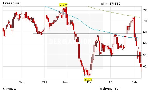 Fresenius ist stark aufgestellt und dürfte sowohl organisch als auch durch Zukäufe weiter auf Wachstumskurs bleiben. Zudem überzeugt die kontinuierliche Dividendenstrategie. Nach 25 Dividendenanhebungen in Folge ist Fresenius Deutschlands erster Dividendenaristokrat. Charttechnisch ist die Aktie von Fresenius allerdings derzeit deutlich angeschlagen: Das Papier ist vor Kurzem an der 200-Tage-Linie gescheitert und im Zuge von Short-Attacken und der allgemeinen Marktschwäche auch unter die Supportmarken von 68 und 64 Euro zurückgefallen. Nun gilt es die Unterstützung bei 60 Euro zu verteidigen. Anleger sollten sich derzeit auf die Lauer legen und versuchen, günstig zum Zuge zu kommen. Fresenius ist ein Wert, bei dem man nach dem Motto verfahren kann: Kaufen und liegen lassen.