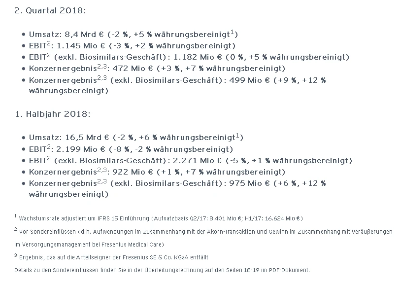 Fresenius rechnet unverändert mit einem Umsatzplus von fünf bis acht Prozent im laufenden Geschäftsjahr, das Konzernergebnis soll um sechs bis neun Prozent (zu konstanten Wechselkursen) zulegen. Für Kabi wird wird nun ein währungsbereinigtes EBIT-Wachstum zwischen minus 2 und plus 1 Prozent in Aussicht gestellt. Zuvor hatte Fresenius mit einem EBIT-Rückgang von sechs bis drei Prozent gerechnet.