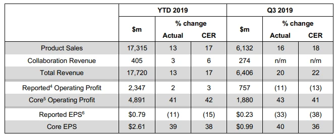 So stiegen die Produkterlöse im dritten Quartal zu konstanten Wechselkursen um 18 Prozent auf 6,13 Millarden Dollar, der Gesamtumsatz kletterte sogar um 22 Prozent auf 6,41 Milliarden Dollar. Unter dem Strich steht ein Kerngewinn von 0,99 Dollar in den Büchern, Analysten haben im Schnitt mit 0,96 Dollar gerechnet.