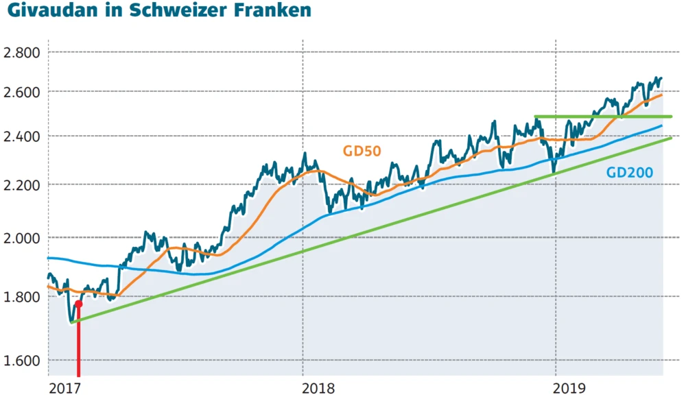 AKTIONÄR-Leser liegen seit der Erstempfehlung in der Ausgabe 08/2017 über 40 Prozent im Plus. Neueinsteiger sollten jedoch auf diesem Niveau nicht mehr zugreifen. Das Kurs-Gewinn-Verhältnis für 2019 beträgt sportliche 30, der deutsche Rivale Symrise kommt auf einen Wert von 33. Aktuell ist die Givaudan-Aktie trotz der sensationellen charttechnischen Verfassung und attraktiven Dividendenrendite von 2,4 Prozent lediglich eine Halteposition mit Stopp bei 1.900,00 Euro.