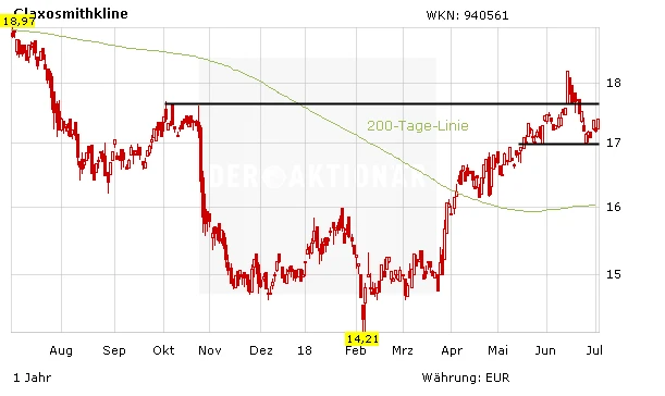Am optimistischsten gibt sich vom Analysten-Trio Emmanuel Papadakis von Barclays. In einer aktuellen Studie schraubt er sein Kursziel um 50 Pence auf 1.750 Pence (19,80 Euro) nach oben und bestätigt seine Kaufempfehlung. Seine Anpassung basiert auf dem starken Vertrieb des Gürtelrose-Impfstoffes Shingrix. Das GlaxoSmithKline-Produkt würde positiver vom Markt angenommen als erwartet.