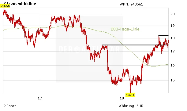 GlaxoSmithKline gibt sich nach einem erfreulichen zweiten Quartal optimistischer für das Geschäftsjahr 2018. Sowohl beim Umsatz als auch Ergebnis je Aktie konnten die Briten die Analystenschätzungen übertreffen. Nach Bekanntgabe der Zahlen legt die Glaxo-Aktie rund zwei Prozent zu und nähert sich damit dem Jahreshoch.