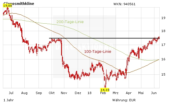 DER AKTIONÄR hatte die Aktie von GlaxoSmithKline nach starken charttechnischen Signalen und positiven Pipeline-Nachrichten in der Ausgabe 17/2018 zum Kauf empfohlen. Anleger die sich das Papier ins Depot gelegt haben, bleiben an Bord. Darüber hinaus spricht auch die Dividendenrendite von 5,2 Prozent für ein langfristig ausgerichtetes Investment bei GlaxoSmithKline.