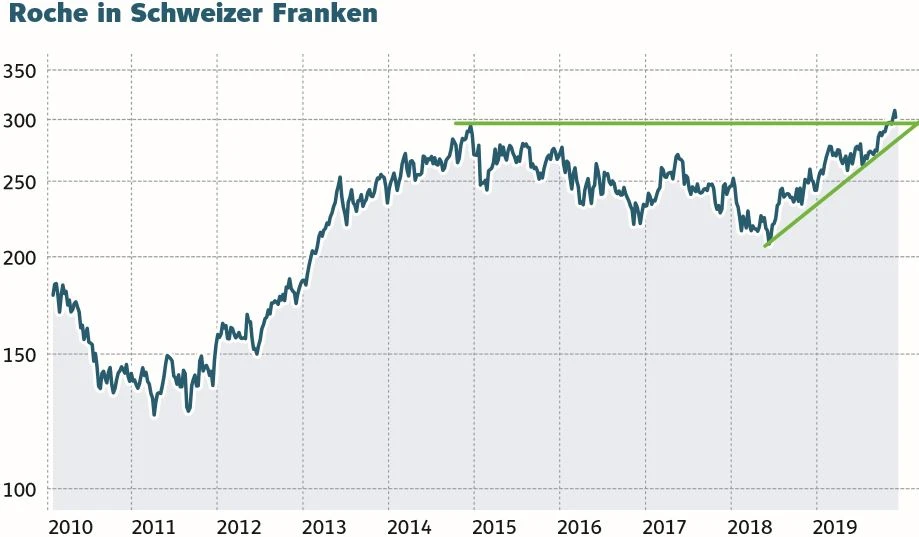 Die Aktie von Roche hat in den vergangenen Wochen und Monaten mächtig Gas gegeben. Rund 25 Prozent hat die Aktie im Vergleich zum Jahrestief 2019, das im Januar bei 242,35 Schweizer Franken markiert wurde, mittlerweile zulegen können. Zuletzt erreichte das Papier sogar bei 310,10 Schweizer Franken ein neues Allzeithoch.