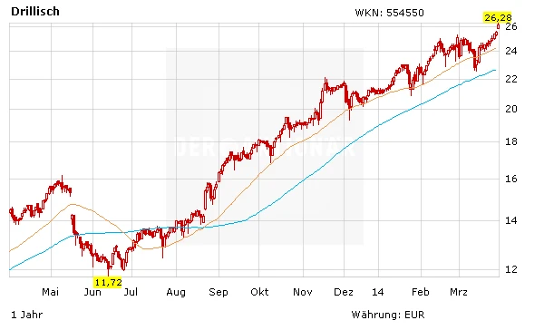 Der Mobilfunkdiscounter Drillisch (Simply, Maxxim) bleibt aggressiv: Ab 1. April werden diverse All-in und Flat-Tarife noch günstiger. Dennoch sprudeln die Gewinne. Die Dividende für 2013 wurde bereits um 23 Prozent erhöht. Und es geht erfreulich weiter. Drillisch strebt für 2014 und 2015 eine Ausschüttung in mindestens gleicher Höhe an.