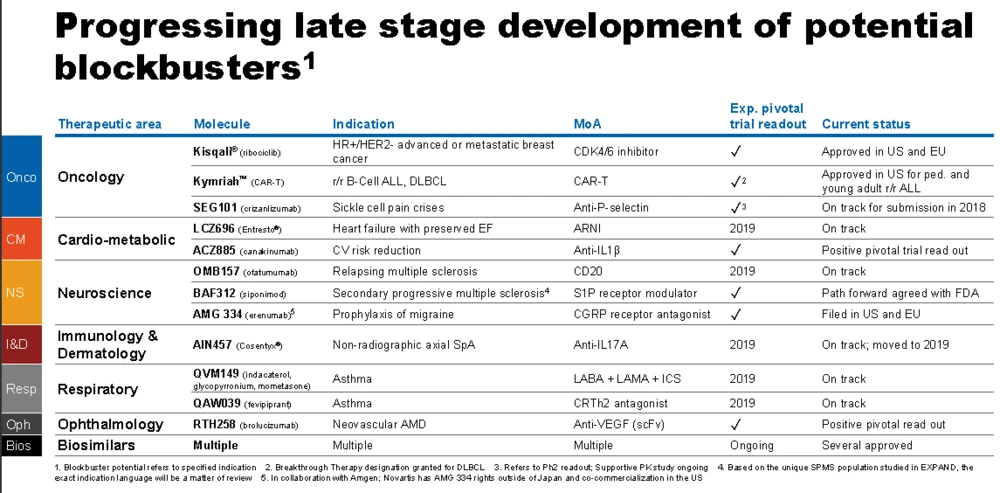 Soweit so gut – die Aktie ins Minus gedrückt hat jedoch die Ankündigung, dass ein mögliches IPO der Augensparte Alcon nicht vor dem ersten Halbjahr 2019 wahrscheinlich sei. „Was wir derzeit erwägen würden, wäre eine separate Börsennotiz", sagte Konzernchef Joseph Jimenez. „Ein selbstständiges Unternehmen mit einer eigenen Börsennotiz und die Aktien würden an die Novartis-Aktionäre ausgegeben." Novartis hatte das Augenheilgeschäft vor gut sieben Jahren für mehr als 50 Milliarden Dollar gekauft, doch es konnte die Erwartungen nicht erfüllen.