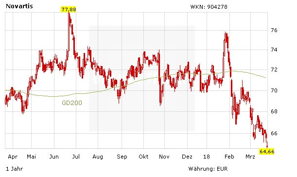 Die Aktie von Novartis hat nach ihrem erfolglosen Ausbruchsversuch Ende Januar zuletzt deutlich Federn lassen müssen. Am heutigen Freitag ist das Papier sogar auf ein neues Jahrestief gefallen. Zuletzt konnten sich Anleger über eine attraktive Dividende von 2,80 Schweizer Franken je Aktie freuen. Die Ausschüttung hat das Chartbild allerdings weiter eingetrübt. Nichtsdestotrotz gilt: Die langfristigen Aussichten für den Schweizer Pharmakonzern sind weiter gut. Neueinsteiger warten aber ein positives charttechnisches Signal ab.