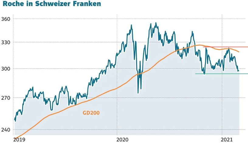 DER AKTIONÄR bleibt optimistisch für die Aktie von Roche. Die Schweizer haben durchaus interessante Treiber im Portfolio und in der Pipeline. Die Aktie von Roche ist aber derzeit weiter angeschlagen. Hier ist zunächst wichtig, dass das Oktobertief 2020 bei 290,55 Schweizer Franken nicht unterschritten wird. Ein positives Signal wäre hingegen das Überspringen der 200-Tage-Linie sowie der Hochs vom Januar 2021 und November 2020. Anleger können sich bei dem Papier zudem über eine starke Dividenrendite freuen: Diese liegt derzeit bei 3,0 Prozent.