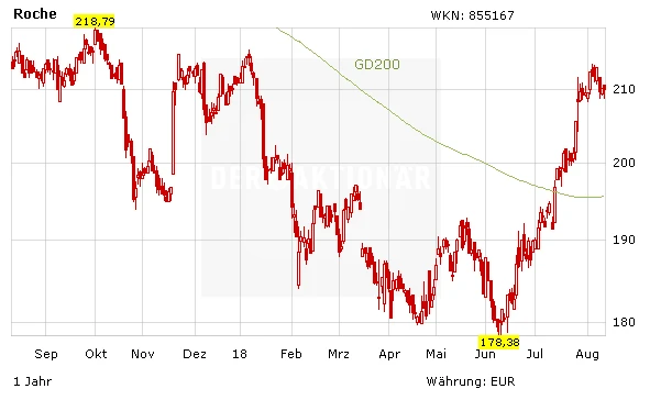 Roche hat zuletzt gleich mit mehreren positiven News aufwarten können. Insbesondere die starken Halbjahreszahlen inklusive der Prognose-Erhöhung für das Gesamtjahr konnten überzeugen. Die Aktie hat zuletzt eine deutliche Aufholjagd gestartet. Anleger lassen ihre Gewinne weiter laufen. Zusätzliches Bonbon: die hohe Dividendenrendite von derzeit 3,5 Prozent.