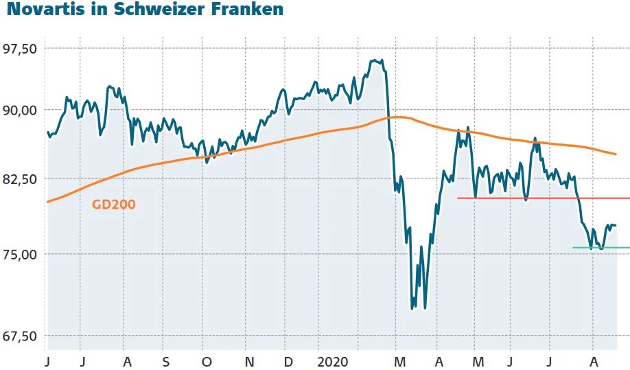Die Aktie von Novartis hat in den vergangenen Wochen Federn lassen müssen, nachdem positive Nachrichten fehlten, die den Kurs ankurbeln hätten können. Zuvor war das Papier an der wichtigen 200-Tage-Linie gescheitert. Die Aktie ist derzeit eine Halteposition – erst ein Sprung über die 200-Tage-Linie würde das charttechnische Bild deutlich aufhellen. Anleger können sich aber weier über eine starke Dividende freuen. Die Rendite beträgt derzeit 3,9 Prozent.