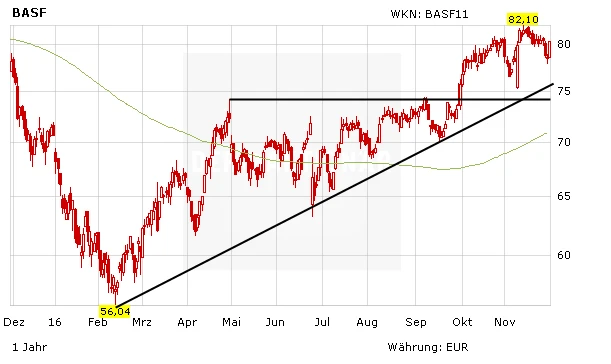 Die Commerzbank hat das Kursziel sogar von 80,00 auf 90,10 Euro angehoben und die Einstufung auf "Buy" belassen. Analyst Lutz Grüten betonte, die soliden Resultate des Chemiekonzerns und das anhaltende Volumen-Wachstum stimmten zuversichtlicher für 2017. Da die Nachfrage in Schlüsselindustrien weiterhin robust sei, dürften neben den Volumina auch die Preise für einige Produkte bereits ab Anfang 2017 anziehen. Dabei profitiere BASF zudem im ersten Halbjahr von einer niedrigen Vergleichsbasis. Somit könnten die Gewinne wahrscheinlich die aktuellen Markterwartungen übertreffen.