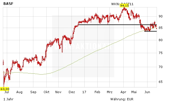 DER AKTIONÄR bleibt daher weiterhin positiv für die BASF-Titel gestimmt. Wer bereits investiert ist, sollte den Stopp bei 68,00 Euro belassen.