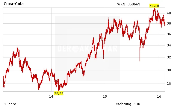 Indes dürfen sich die Anteilseigner von Coca-Cola auf die nächste Dividendenerhöhung freuen. Nachdem es bei den letzten vier Quartalsdividenden jeweils 33 US-Cent pro Aktie gab, wird für März einer Erhöhung auf 35,5 Cent erwartet. Für das Gesamtjahr würde sich die Dividende damit auf 1,42 Dollar belaufen, woraus sich eine Rendite von knapp 3,3 Prozent errechnen würde. Zudem erhöht Coca-Cola bereits seit mehr als 50 Jahren Jahr für Jahr die Dividende und zählt damit zum elitären Club der Dividenden-Aristokraten.
