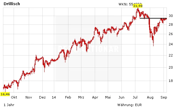 Die Aktie von Drillisch hat in den vergangenen Wochen deutlich zulegen können. Dabei profitierte der Wert von den jüngsten Entwicklungen am Mobilfunkmarkt in Deutschland. Zuletzt hatte die EU die Übernahme von E-Plus durch Telefónica Deutschland (O2) genehmigt, die aber an Auflagen geknüpft. So dürfe Drillisch bis zu 30 Prozent der Netzkapazitäten des neuen Mobilfunkriesen nutzen und bis zu 600 Shops übernehmen. Nun will Drillisch eine eigene Filialkette aufbauen. "Wir werden zu Beginn des nächsten Jahres die ersten Handy-Shops eröffnen", sagte Vorstandssprecher Paschalis Choulidis der "Wirtschaftswoche". Ob die Shops den Firmennamen Drillisch tragen oder unter einer der zwölf Discount-Marken von Drillisch firmieren werden, werde derzeit noch geprüft. Bei den Läden werde es sich um ehemalige Filialen der Konkurrenten O2 und E-Plus handeln.