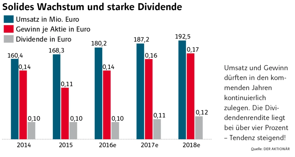 Neben der soliden Entwicklung hat sich die Edel-Aktie in den vergangenen Jahren als echte Dividendenperle heraus kristallisiert. Für das abgelaufene Jahr sollen wieder zehn Cent ausgeschüttet werden, was einer Rendite von aktuell über vier Prozent entsprechen würde. Aus heutiger Sicht dürfte sich an der aktionärsfreundlichen Dividendenpolitik nichts ändern. „Ich gehe davon aus, dass Edel auch in den nächsten Jahren weiter wächst und attraktive Dividenden auszahlt“, stimmt Analyst Braun zu.