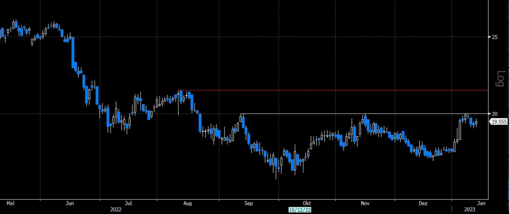 Eine Gasmangellage ist mittlerweile sehr unwahrscheinlich. Zudem nehmen die Sorgen wegen der hohen Energiekosten weiter ab. Schwächt sich nun auch noch die Weltkonjunktur 2023 nicht so stark ab wie noch 2022 befürchtet, dürfte sich die Erholung bei zyklischen Werten wie Evonik fortsetzen. Mutige können bei der Dividendenperle weiterhin einsteigen. Der Stoppkurs kann vorerst noch bei 15,00 Euro belassen werden.
