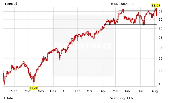 Im Laufe des Donnerstags ist die Aktie des Mobilfunkanbieters Freenet deutlich unter Druck geraten. Mit einem Minus von gut sechs Prozent ist der Tec-DAX-Titel wieder in den Seitwärtstrend zurückgefallen. Die überraschend guten Umsatzzahlen haben die Anleger nach anfänglicher Freude nicht nachhaltig zufrieden gestellt.