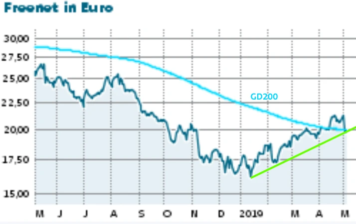 Kein Wunder: Die Aktie stand bereits am Freitag kräftig unter Druck nachdem die Analysten von der UBS den Daumen für den Mobilfunkdienstleister gesenkt hatten. Doch die Bullen geben sich nicht geschlagen. Der Kurs arbeitet im Bereich der wichtigen 200-Tage-Linie (siehe Chart) an einer Stabilisierung. Die Chance ist groß, dass die Papiere im Vorfeld der Hauptversammlung am 16. Mai den ebenfalls in diesem Bereich verlaufenen Aufwärtstrend wieder aufnehmen.