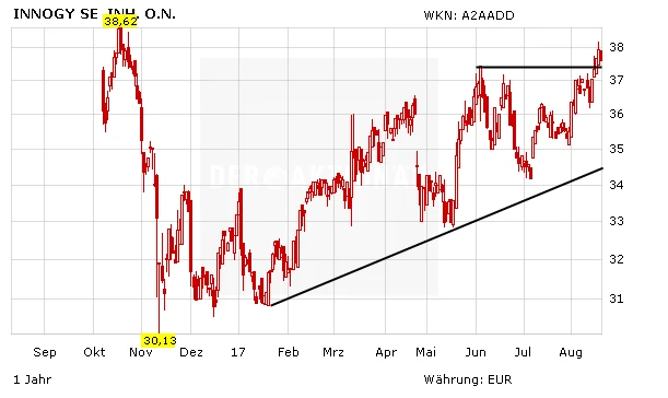 Es ist richtig, dass Innogy das Wachstumsfeld mit erneuerbaren Energien ausbauen will. Langfristig sind so weiter steigende Kurse zu erwarten. Der große Vorteil: Aufgrund der stabilen Gewinnbringer mit dem Netzgeschäft und dem Vertrieb ist der Kurs nach unten abgesichert. Zudem ist die Aktie als Dividendenperle mit einer aktuellen Rendite von 4,5 Prozent eine Art Festgeldersatz. Konservative Anleger sind mit dem Versorger gut beraten.