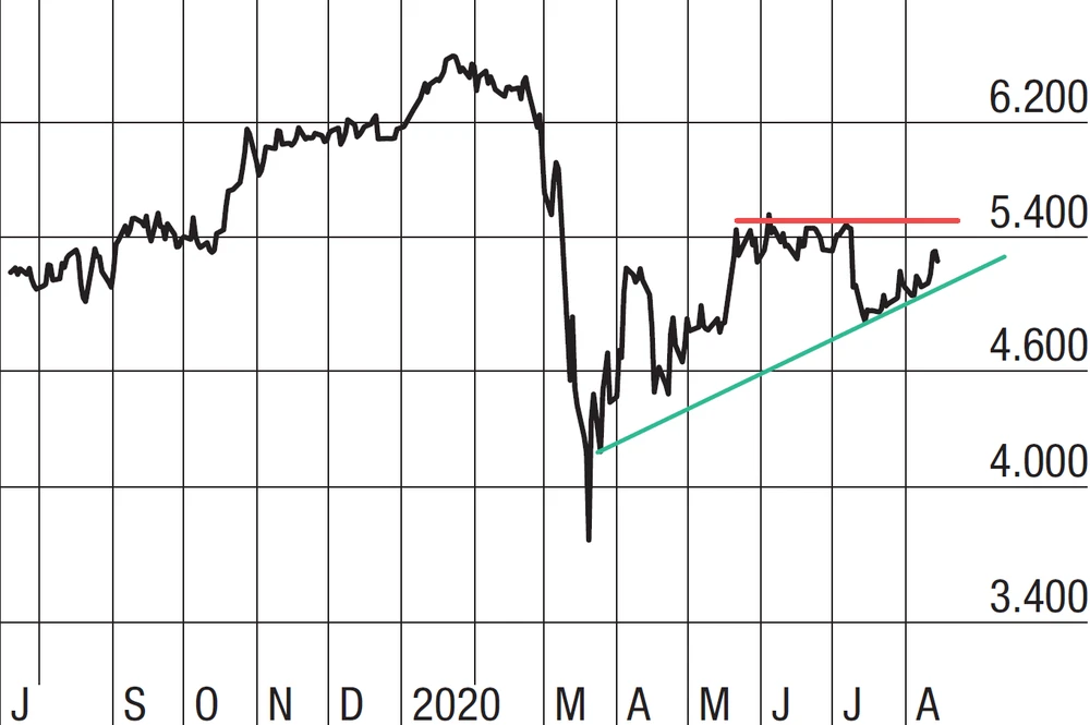 Trotz der schwachen Nachfrage, steht die Lukoil-Aktie kurz vor einem Break. Dafür muss der Kurs die Marke von 5.550 Russischen Rubel überwinden. Vom aktuellen Niveau (5.250 Rubel) sind das nur noch knapp fünf Prozent. Sollten die Quartalszahlen die Markterwartungen übertreffen, könnte die Aktie eine Rallye hinlegen. Spekulativ orientierte Anleger können auf ein solches Szenario setzen.