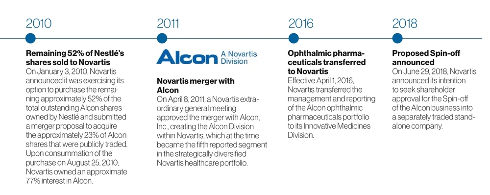 Im Rahmen der Vorlage der Geschäftszahlen für das Fiskaljahr 2018 hat Novartis die Pläne für die Abspaltung der Augenheilkunde-Sparte Alcon per Broschüre konkretisiert. Der Verwaltungsrat stimmt dem Vorschlag des Managements zu. Nun müssen die Aktionäre auf der Generalversammung von Novartis am 28. Februar 2019 grünes Licht für die Transaktion geben.