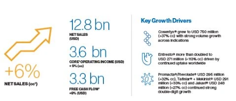 Der Umsatz kletterte von Juli bis September 2018 um drei Prozent auf 12,8 Milliarden Dollar im Vergleich zum entsprechenden Vorjahreszeitraum. Zu konstanten Wechselkursen betrug das Plus sogar sechs Prozent. Das operative Kernergebnis, aus dem Abschreibungen, Zu- und Verkäufe sowie andere Sonderfaktoren heraus gerechnet sind, stieg um fünf Prozent auf 3,56 Milliarden Dollar. Unter dem Strich blieb ein Gewinn von 1,62 Milliarden Dollar. Dieser verringert sich im Verglich zum Vorjahr um 22 Prozent, da durch die Veräußerung des Anteils am Consumer-Healthcare-Gemeinschaftsunternehmen mit GlaxoShmithKline Beiträge hieraus weggefallen sind. Der Vorstandsvorsitzende Vas Narasimhan zeigte sich sehr zufrieden mit dem Ergebnis: „Getragen von der Division Innovative Medicines konnten wir ein margensteigerndes Wachstum erzielen und damit unsere starke operative Performance fortsetzen.“ Gleichzeitig erhöhte der Konzern die Prognose für das Gesamtjahr. Das Unternehmen traut sich nun einen Umsatzzuwachs im mittleren einstelligen Prozentbereich zu, nachdem zuvor noch ein Plus im niedrigen bis mittleren einstelligen Bereich angepeilt worden war.