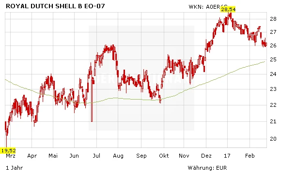 Die Aktie von Royal Dutch Shell ist sicherlich kein Papier, welches Anleger innerhalb kurzer Zeit reich machen wird. Allerdings eignen sich die Titel hervorragend dafür, sich in einer Zeit extrem niedriger Zinsen kontinuierlich über satte Renditen von knapp sieben Prozent zu freuen und darüber hinaus auch gute Chancen auf moderate Kurssteigerungen zu haben. Bereits investierte Anleger bleiben dabei und beachten den Stopp bei 20,50 Euro.