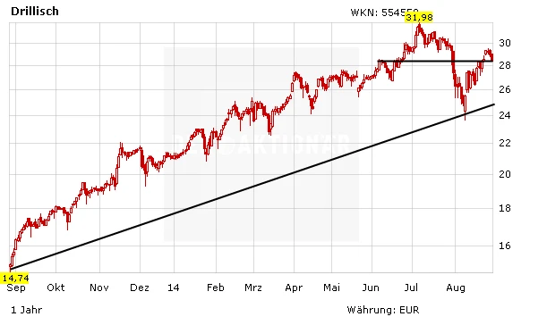 Charttechnisch hat die Drillisch-Aktie im Vergleich mit Freenet derzeit die Nase vorn. Die Korrektur war hier zwar scharf, aber nur von kurzer Dauer. Hält die Unterstützung bei rund 28,50 Euro, ist ein neuer Angriff auf das Allzeithoch vom Juli weiterhin möglich. Der langfristige Aufwärtstrend ist ohnehin nach wie vor intakt.