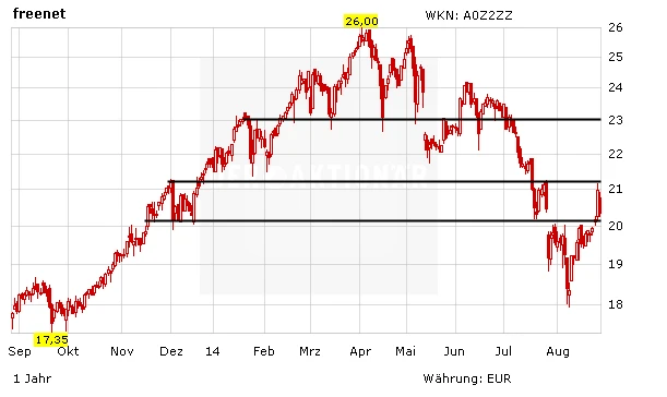 Doch auch Freenet hat zuletzt wieder deutlich zugelegt. Nach der längeren Konsolidierungsphase gelang der Aktie zuletzt der Sprung über die Hürde bei 20,20 Euro. Kann diese Marke nun verteidigt werden, rückt der Widerstand bei 21,20 Euro erneut ins Visier. In einem stabilen Marktumfeld dürfte dann auch der Bereich von 22 bis 23 Euro wieder interessant werden.