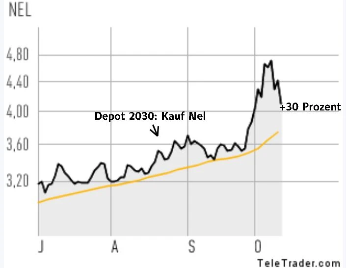 Es kommt noch besser: Hier stimmt nicht nur die Story, sondern auch in besonderem Masse die Charttechnik. Pro Monat erhalten nur 4 von 1.000 Aktien grünes Licht von der Turnaround Formel AKTIONÄR TFA. Das Musterdepot dieses Systems hatte 2017 über 100 Prozent Plus erzielt. Dieses neue TFA-Signal ist ein wichtiger Ritterschlag für die neue Depot-Aktie des Hot Stock Report. Wichtiger Hinweis: Die Aktie war zu heiß für das TFA-Musterdepot – daher jetzt die Aufnahme in das Depot 2030. Im Hot Stock Report sind die Leser dank Altempfehlungen wie Nvidia, Bitcoin Group, Staramba, Norcom hohe Volatilität gewohnt. Zuletzt wurde bereits mit der Brennstoffzellen-Aktie Nel schnelle Gewinne erzielt.