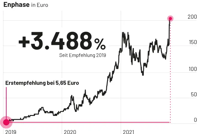 Hinweis: Enphase ist seit 2019 (+3.488 Prozent) eine laufende Empfehlung des AKTIONÄR Hot Stock Report. Zudem ist Solaredge Teil des Depot 2030 (+570 Prozent seit Erstkauf). Am morgigen Freitag gibt es neue Transaktionen im Depot 2030, welches heute die Rekordmarke von 300 Prozent geknackt hat. Einfach hier freischalten und ab sofort alle Transaktionen frühzeitig per Mail erhalten.