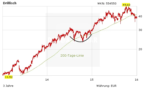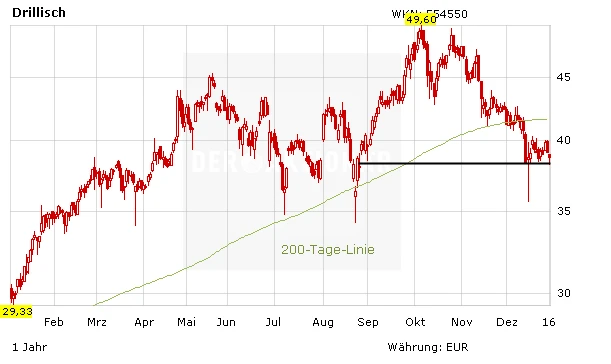 Charttechnisch hat sich der als Dividendenpapier bei Anlegern beliebte Wert stabilisiert – die Marke von 38,01 Euro hat der Aktie Halt gegeben. Das Papier notiert jedoch noch unterhalb der 200-Tage-Linie. Doch dieses Szenario lag auch 2014 vor, als die Aktie dann im Anschluss ein neues Allzeithoch markiert hat.