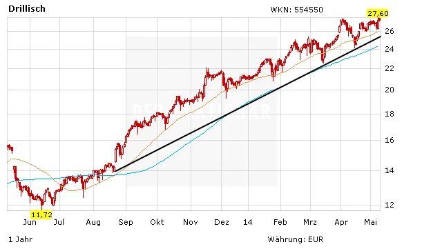 Drillisch wurde in der AKTIONÄR-Ausgabe 15/2014 als eine der „besten Dividenden-Aktien für Ihr Depot“ vorgestellt. Das Papier bleibt ein Kauf: Die Rendite beträgt rund fünf Prozent, der charttechnische Aufwärtstrend ist voll intakt.