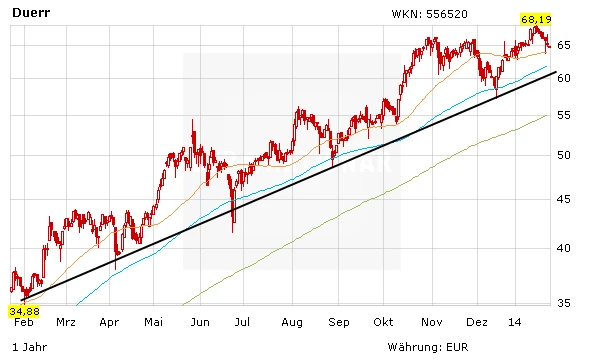 Wer Aktien der Dürr AG im Depot hat, der sollte sich einfach entspannt zurücklehnen und das rege Treiben an der Börse aus der Ferne beobachten. Gut möglich, dass es in den nächsten Wochen am deutschen Aktienmarkt eine knackige Konsolidierung gibt. Mitunter werden dann auch die Anteilsscheine von Dürr wieder einige Prozentpunkte billiger. Wie es aber in den vergangenen Monaten bereits immer wieder der Fall war, haben Trendaktien mit hoher relativer Stärke - wie zum Beispiel Dürr - ihre Verluste schnell wieder wettgemacht.