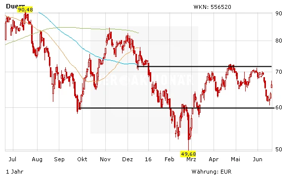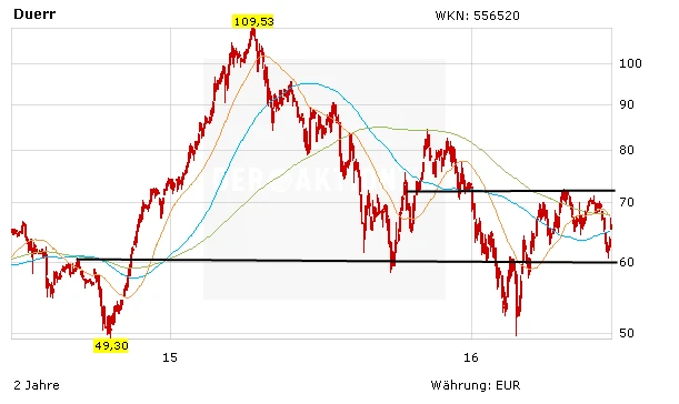 Mit dem Anstieg testet die Dürr-Aktie sogar ihre 200-Tage-Durchschnittslinie. Ohnehin ist Dürr eine interessante Anlage. Nicht nur die Geschäftsaussichten versprechen Spannung, immer wieder wird Dürr auch mit einer eventuellen Übernahme in Verbindung gebracht. Nicht unbedingt abwegig. Schließlich sind derzeit die Chinesen auf großer Einkaufstour. Die Aktie jedenfalls ist eine Spekulation wert. Anleger kaufen allerdings nicht in die Stärke hinein, sondern warten günstigere Kurse ab.