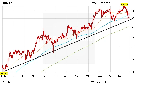 Dabei läuft es nach Ansicht von DER AKTIONÄR bei Dürr nach wie vor ganz hervorragend. Die Aktie hat im Zuge der Schwäche des Gesamtmarktes eine Korrektur wie aus dem Bilderbuch absolviert. Hierbei wurde die untere Begrenzung des Aufwärtstrends erreicht, woraufhin das Papier wieder nach oben drehte.