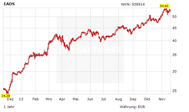 DER AKTIONÄR sieht sich durch die jüngsten Konzernaussagen in seiner positiven Einschätzung für die EADS-Aktie bestätigt. Die Auftragsbücher Tochter Airbus sind zweifellos prall gefüllten Auftragsbüchern. Zudem dürften sich die Margen in den kommenden Quartalen erholen. Insgesamt hat die Aktie Luft bis 62 Euro.
