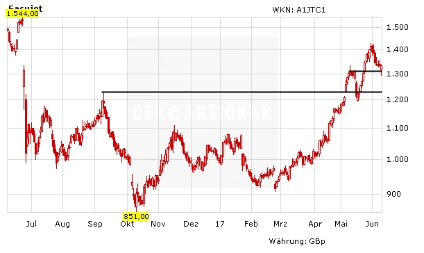Auch aus charttechnischer Sicht scheint dieser Bereich – vorerst – das nächste Ziel zu sein. Nach dem deutlichen Kursanstieg seit Jahresbeginn konsolidiert die Easyjet-Aktie aktuell noch. Doch bald dürfte der Kurs wieder Schwung aufnehmen, um endlich die nach dem Brexit-Votum entstandene Kurslücke bei 1.509 Pence zu schließen.