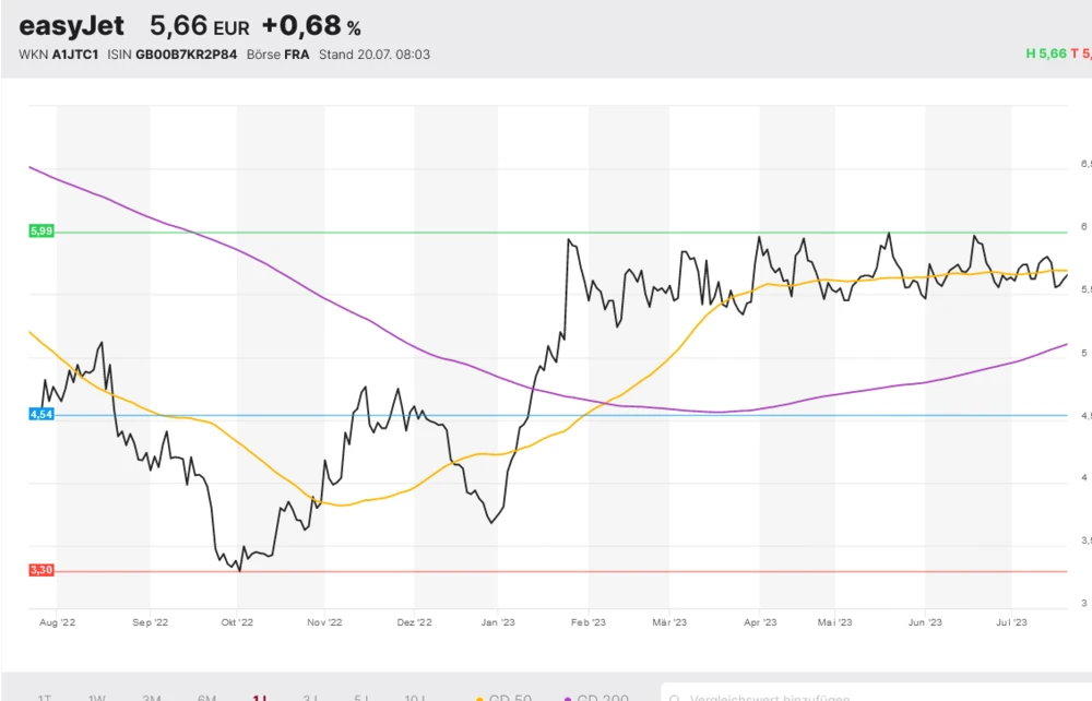 Die guten Unternehmenszahlen dürften weitestgehend eingepreist sein, aktuell liegt die Aktie mehr als ein Prozent im Minus. Seit Jahresbeginn stehen knapp 50 Prozent Kursgewinn zu Buche. Das Marktumfeld für Airlines bleibt weiterhin positiv. Hohe Preissetzungsmacht dürfte zu weiter steigenden Gewinnen bei EasyJet führen.