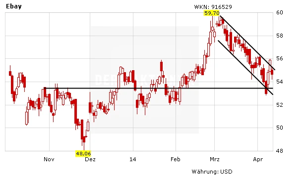 Aus charttechnischer Sicht befindet sich die Aktie nach einem Ausbruch aus dem abwärtsgerichteten Trendkanal in einer entscheidenden Phase. Sollte die Aktie jetzt wieder nach oben drehen, so wäre der Ausbruch bestätigt und das nächste Ziel das Jahreshoch bei 59,70 Dollar. Fällt der Kurs jedoch wieder in den Trendkanal zurück, ergibt sich auf der Unterseite ein Ziel bei 53,00 Dollar.