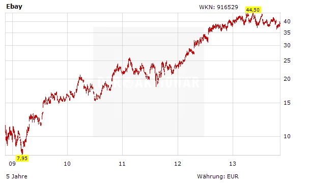 Die Aktie des Online-Auktionshauses Ebay startete 1998 mit einem sagenhaften Plus von rund 160 Prozent an die Börse. Nach dem fulminanten Auftakt ist die Aktie zwar erst einmal zurückgekommen. Für Anleger hat sich ein Investment der ersten Stunde aber trotzdem gelohnt - der Titel steht heute um Aktiensplits bereinigt rund 2.700 Prozent höher als damals zum Eröffnungskurs.