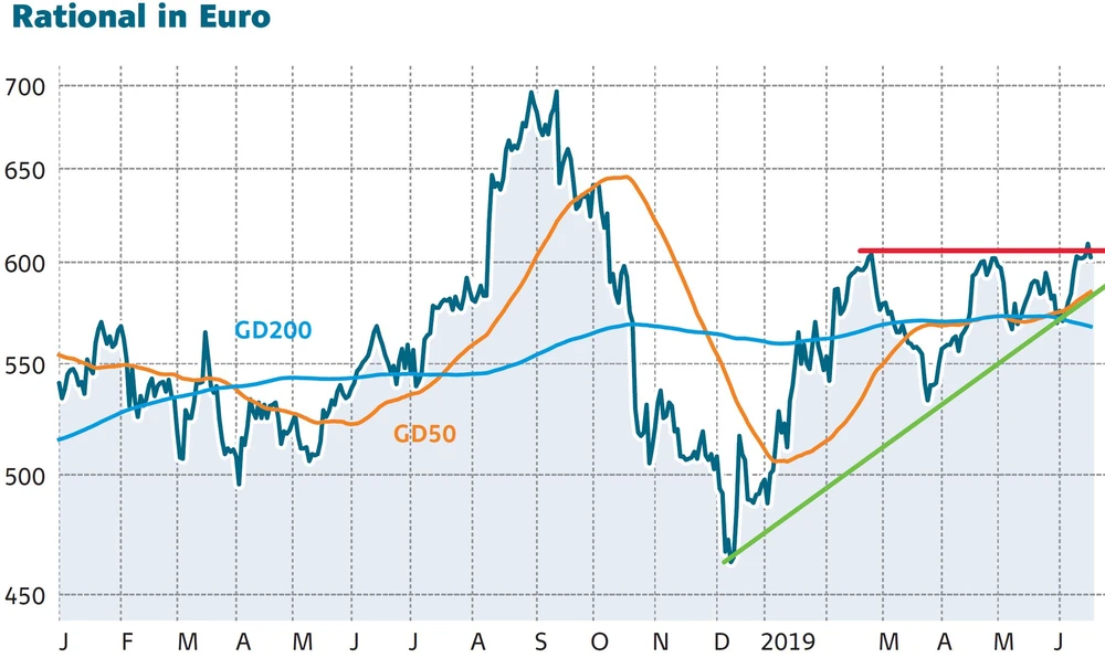 Rational glaubt, mit diesen beiden Kochautomaten sämtliche herkömmliche Küchengeräte ersetzen zu können. Seit dem Börsengang im Jahr 2000 ist die Aktie um 2.539 Prozent explodiert, von 23 (Ausgabepreis) auf 607 Euro.