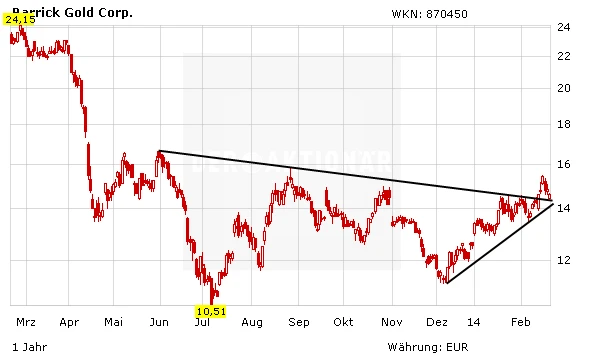RBC Capital stuft die Aktie jetzt mit „Outperform“ ein. Zuvor hatten die Analysten Barrick noch mit „Sector Perform“ geführt. Das Kursziel haben sie von 24,00 auf 28,00 Dollar angehoben. RBC glaubt, dass Barrick den gesamten Goldminensektor outperformen kann. Das liegt nach Einschätzung der Analysten an dem höheren Cashflow und den Verkauf von Assets mit hohen Cashkosten.