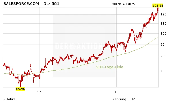 Aggressive Expansionspolitik durch Übernahmen und strategische Partnerschaften – wie die mit Alphabets Google Analytics 360: Salesforce gibt sich kaum Zeit zum Atmen. Erst im März kaufte der Konzern die Digital-Commerce-Plattform CloudCraze. Einige Investoren befürchten, dass sich die Unternehmensführung für zusätzliches Wachstum zu sehr auf Akquisitionen konzentriert. Jedoch konnte Salesforce die Zukäufe bisher immer gut integrieren und zusätzlichen Wert schaffen. Solange dies so bleibt und auch das organische Wachstum überzeugt, steht weiteren Kursgewinnen nichts im Weg.