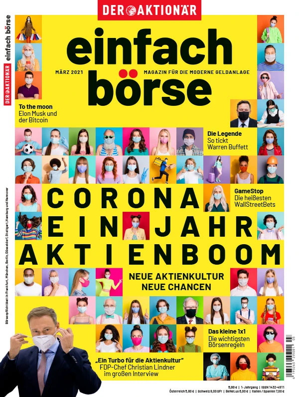In der März-Ausgabe beleuchtet einfach börse die Gewinner des Wandels, den Corona für Gesellschaft und Wirtschaft mit sich gebracht hat. Sind die Gewinner von heute auch die Gewinner von morgen, lohnt bei Amazon, Beyond Meat, Etsy und Co der Einstieg? Wie ist es um die Verlierer bestellt, etwa die Aktien von Lufthansa und TUI? Warten bei den Impfstoffherstellern Sonderchancen? Und wie denkt eigentlich Albert Bourla über all das? Der Chef des Pharma-Riesen Pfizer sieht im Interview den Sieg der Wissenschaft über das Virus kommen. Sein Unternehmen entwickelte gemeinsam mit der deutschen BioNTech den ersten wirksamen Impfstoff gegen das Coronavirus.