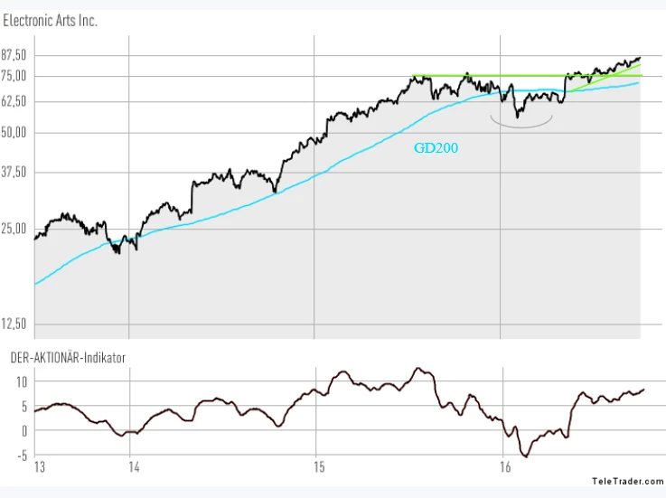 Charttechnisch erreichte EA in den vergangenen Tagen ein neues Allzeithoch. Mit einem KGV von 23 für das kommende Jahr ist der Spiele-Publisher moderat bewertet. DER AKTIONÄR setzt auf eine Fortsetzung der Gaming-Story – mit FIFA 17 hat Electronic Arts einmal mehr die Fans und Aktionäre überzeugt. Mit dem Top-Tipp Derivate aus Heft 37/16 können Anleger überproportional an der Kursentwicklung bei Electronic Arts teilhaben.