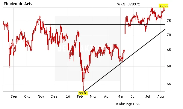 Starke Zahlen und eine erfolgversprechende Produktpalette: Die EA-Aktie steht vor einer aussichtsreichen Zukunft. Mit dem neuen Allzeithoch ist auch charttechnisch der Weg nach oben frei. Auf Sicht hält DER AKTIONÄR ein Kursziel von 97 Euro für möglich.