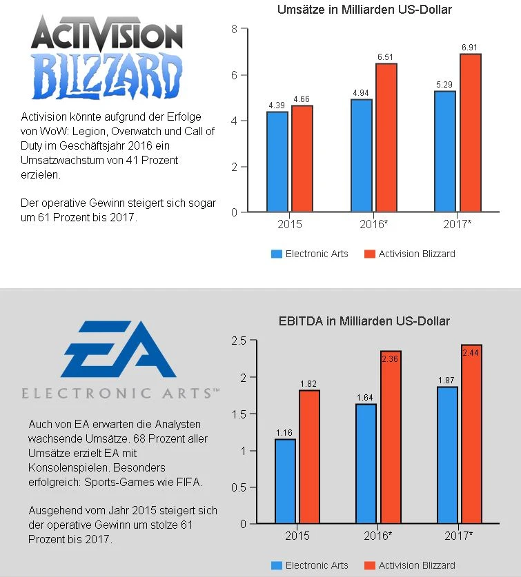 Für den Anleger sind sowohl Activision Blizzard als auch EA interessant. Beide Spieleentwickler erwarten – wie die Grafik zeigt – gute Zahlen.