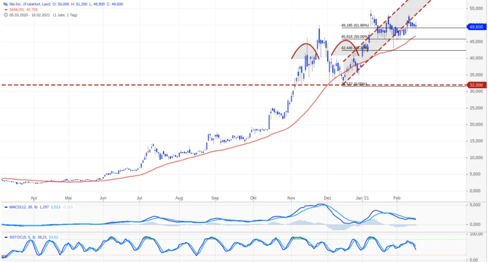Die letzten Zahlen von Nio kamen an der Börse sehr gut an. Im Januar hat das Start-up über 7.200 Fahrzeuge ausgeliefert. Ein Plus von über 350 Prozent im Vergleich zum Vorjahr. Hinzu kommt die Tatsache, dass Nio Anfang Januar ein neues Modell vorgestellt hat. Mit dem ET7 will Nio das Segment der Limousinen aufmischen. Ein Markt, in dem sich zuletzt Tesla ausgebreitet hat. Mit seinen bisherigen Modellen hat sich Nio auf das hochpreisige SUV-Segment konzentriert. Die Aktie hat in den letzten Wochen jedoch etwas an Momentum eingebüßt.